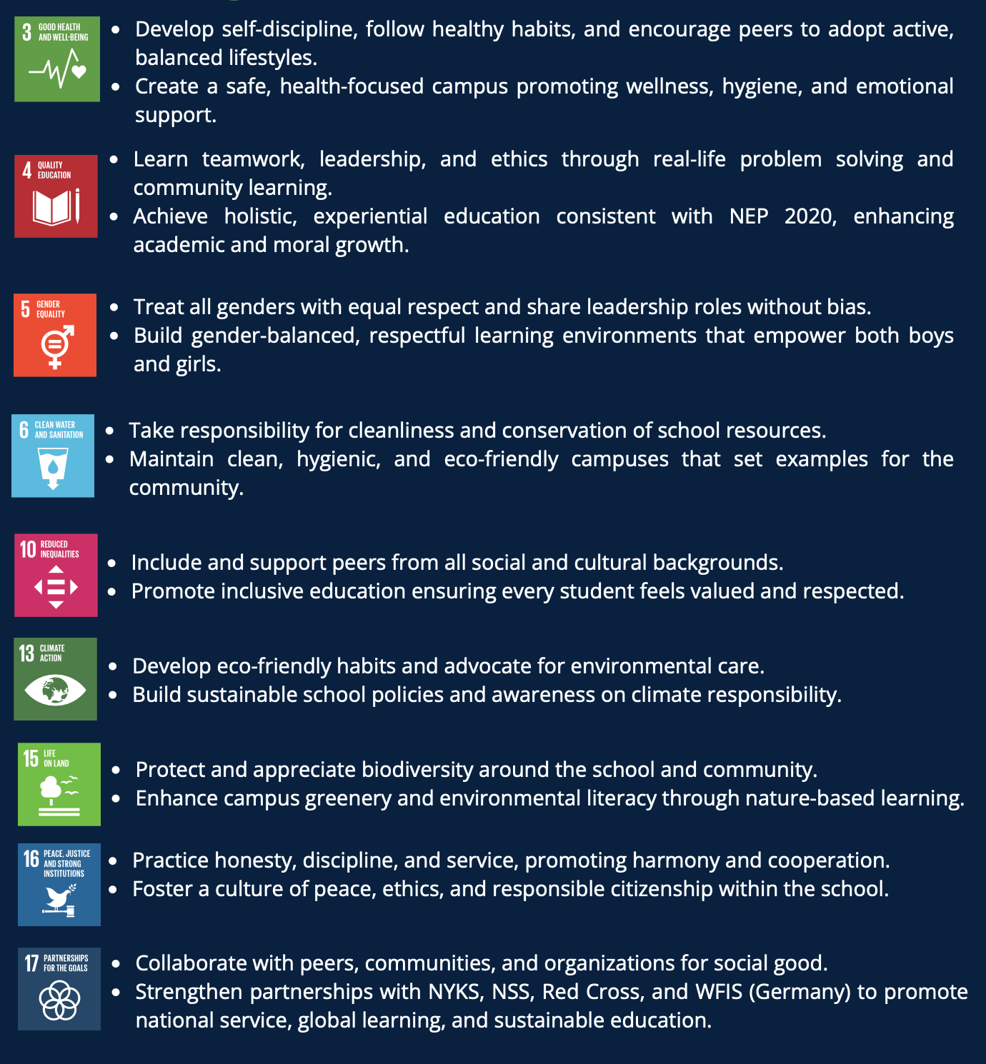 We are committed to the United Nations Sustainable Development Goals. Our activities are designed to mobilize youth towards the 2030 Agenda.